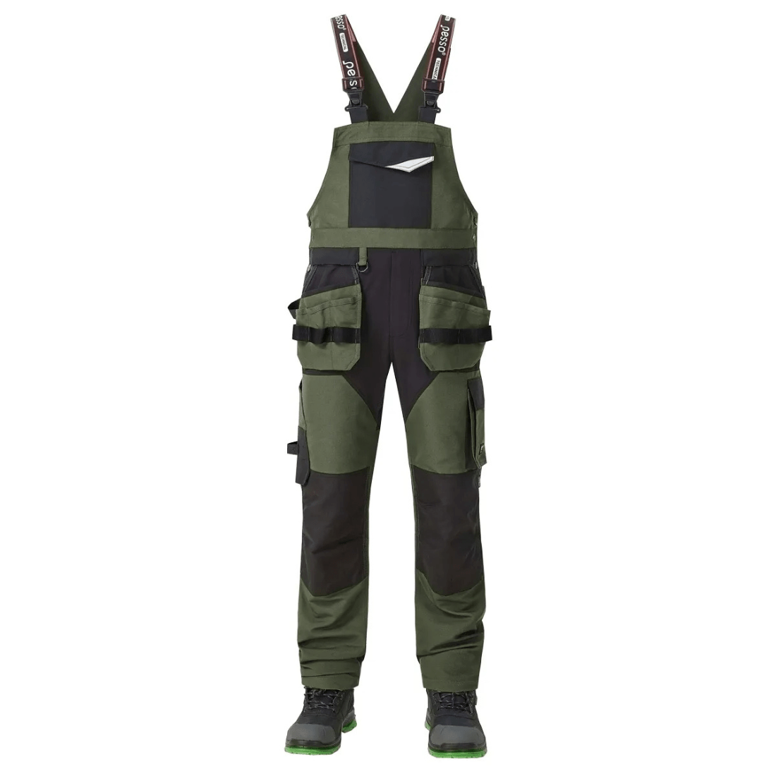 Darbo puskombinezonis Pesso Titan Flexpro ypač tvirto audinio Pesso darbo kombinezoninės kelnės su Cordura® detalėmis ilgaamžiškumui ir 4 kryptimis tampriu audiniu judėjimo laisvei. Patogus modelis nevaržo judesių. Patvarus pagrindinis Dobby audinys. Tvirtas 4 kryptimis tamprus audinys keliose vietose. Nuimamos kabinamos kišenės. Cordura® sutvirtinimai. Sustiprinto pynimo poliesterio/medvilnės audinys, pasižymintis dideliu atsparumu dėvėjimuisi. Viršutinėje nugaros ir priekinėje dalyje bei užpakalinėje kelių dalyje, užtikrina judesių laisvę. Nusegamos Cordura® kabinamos kišenės – talpios, su sustiprintu užtrauktuku. ZipcoverTM sistema – skirta prisegti pakabinamom tūrinėms kišenėms. Cordura® kelių apsaugų kišenės – pagerintas mobilumas ir ilgaamžiškumas. Anatomiškai formuoti keliai – geresniam prigludimui ir lankstumui. Funkcinės kišenės: krūtinės kišenė, dvi kabinamos kišenės, priekinės kišenės, dvi galinės kišenės, dvi šoninės kišenės. Plaktuko kilpa . Liniuotės kišenė. Užsegama kišenė mobiliajam telefonui.